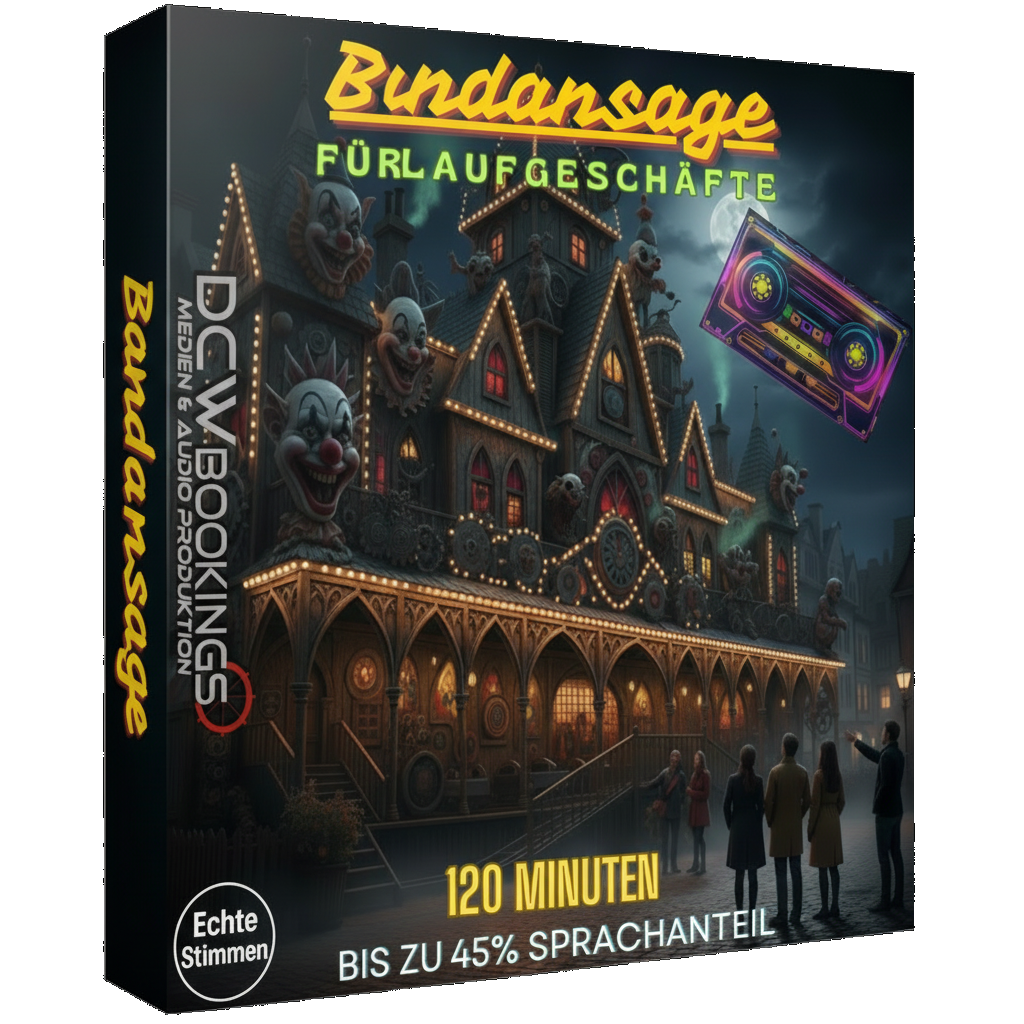 Unsere 120-Minuten-Bandansage ist perfekt für Laufgeschäfte, die Wert auf professionelle Durchsagen, Ansagen und hochwertige Soundgestaltung legen.