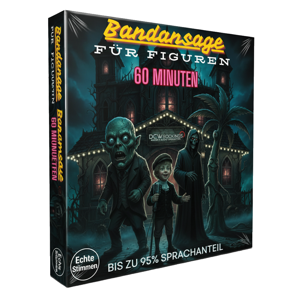 Bring deine animierten Figuren zum Leben! Mit unserem exklusiven 60-Minuten-Hörspielpaket erhältst du eine komplett produzierte Sprachfolge im Hörspielstil – ideal für Freizeitparks, Grusel- und Themenattraktionen, Messefiguren, Animatronics und Show-Installationen.